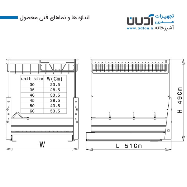 - مناسب برای نصب به کف کابینت با عمق 55 سانت