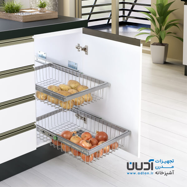ویژگی های محصول: دارای فضای زیاد جهت نگهداری سیب زمینی و پیاز دسترسی آسان با توجه به کشویی بودن استحکام مناسب شاسی و سبد پوشش مناسب آبکاری و رنگ کاری جهت جلوگیری از خوردگی نصب آسان مطابق برگه نصب